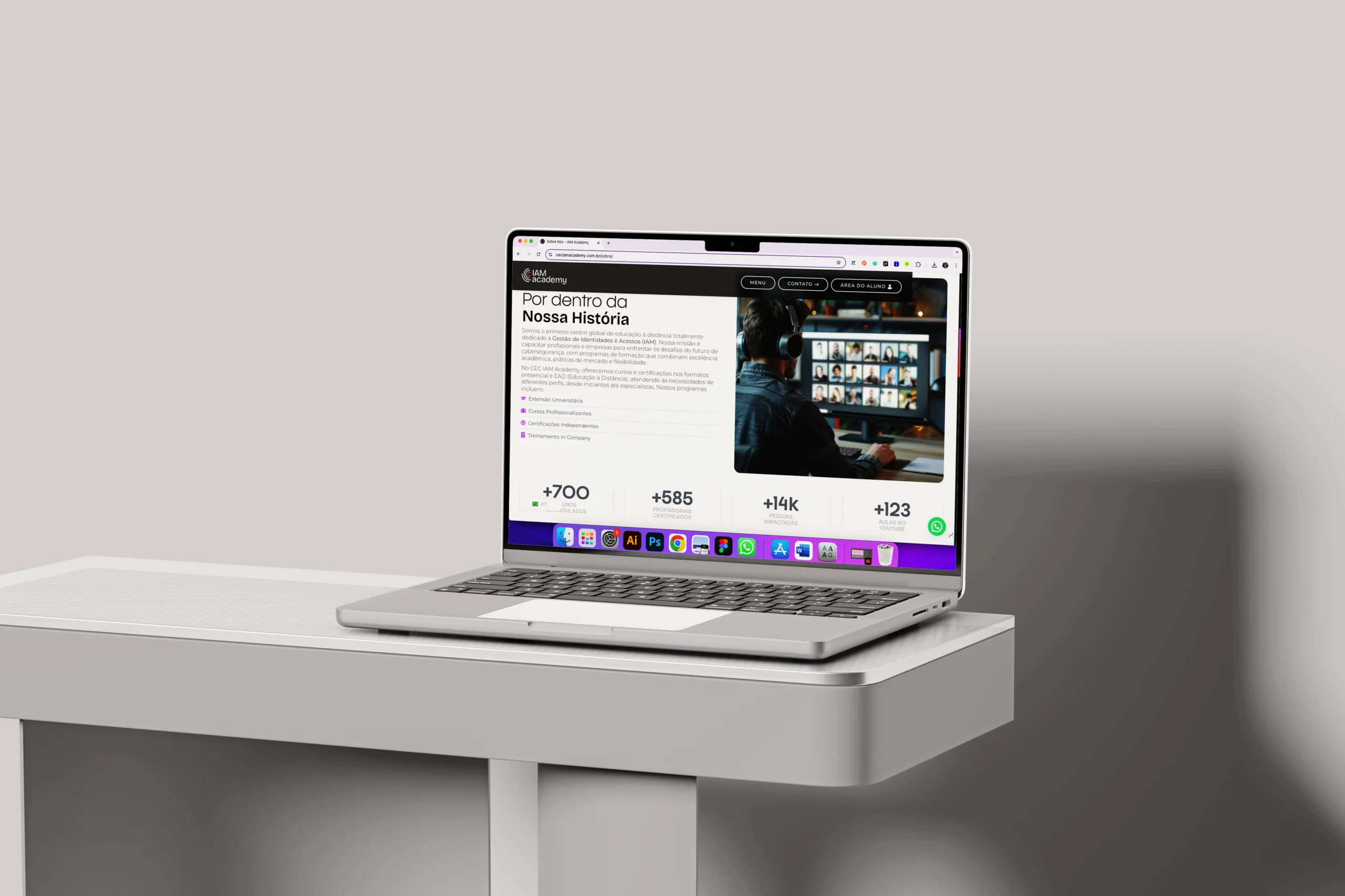Para a IAM Academy, desenvolvemos o site institucional com foco em apresentar seus programas educacionais de forma clara, organizada e atrativa. Estruturamos uma navegação intuitiva e um visual contemporâneo que reforça a credibilidade da instituição e valoriza sua proposta de formação. O resultado é um site funcional, profissional e alinhado à identidade da Academy.