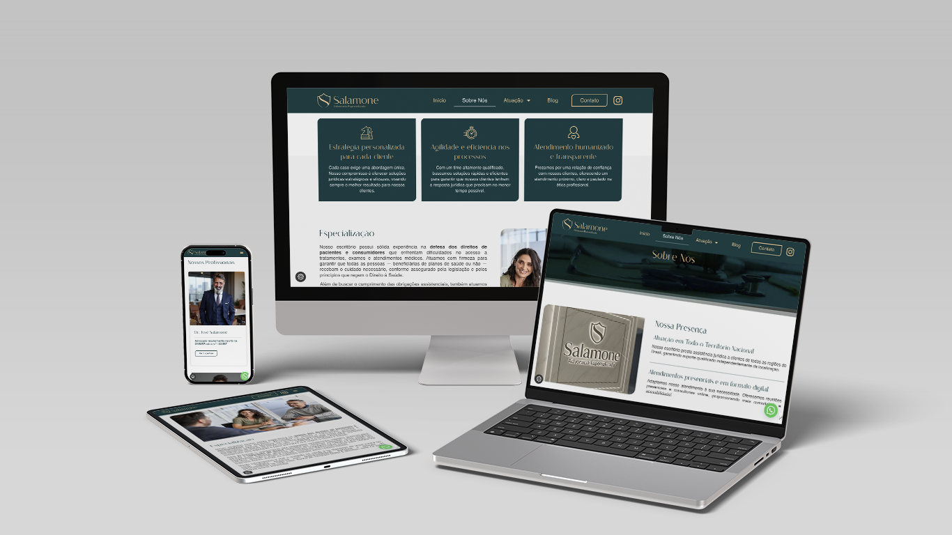 Para a Salamone, desenvolvemos o site institucional e a identidade visual completa, reforçando o posicionamento da marca no setor em que atua. Criamos uma linguagem visual moderna e consistente, alinhada aos valores e à proposta da empresa. O site foi estruturado com navegação clara, conteúdo organizado e foco em credibilidade, garantindo uma comunicação profissional e integrada entre marca e plataforma digital.